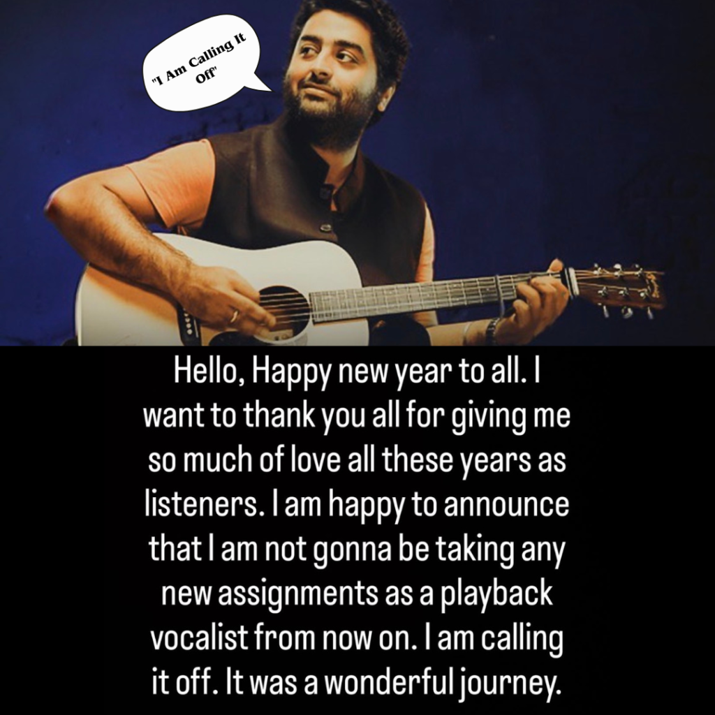 Arijit has not yet revealed specific reasons behind his decision or what his future holds beyond playback singing. Fans and industry insiders are awaiting further comments.