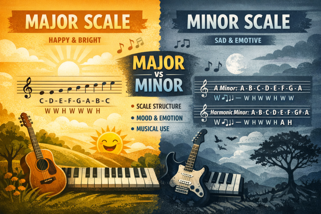 Major and minor scales form the backbone of Western music theory. Almost every melody, chord progression, and harmony in popular, classical, jazz, and film music is derived from these two scale types. Understanding how major and minor scales work is essential for musicians, composers, and producers who want to create music with clarity, emotion, and structure.
